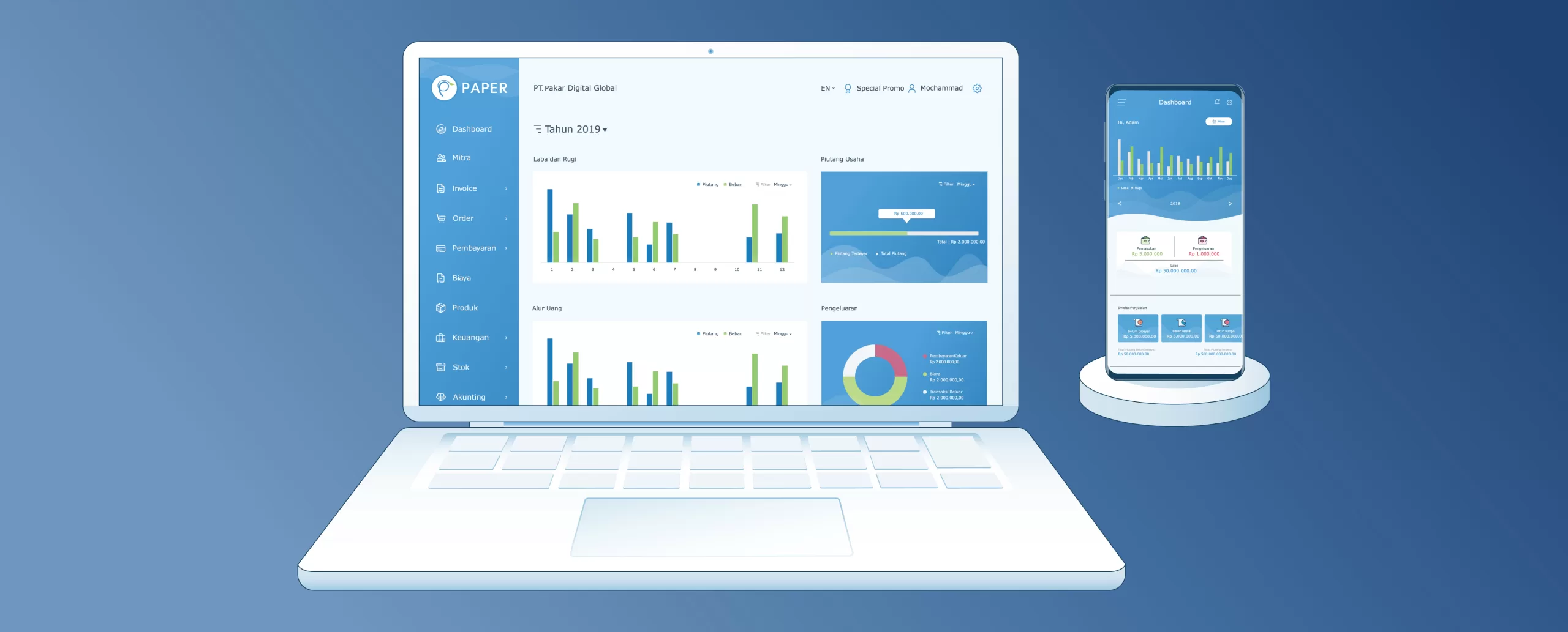 Paper.id menawarkan kepada pemilik bisnis inovasi terbaru yang mudah digunakan untuk mencatat penjualan, quotation, mengirim faktur, menerima pembayaran, dan mengelola inventaris serta memantau kinerja bisnis melalui laporan keuangan yang komprehensif.